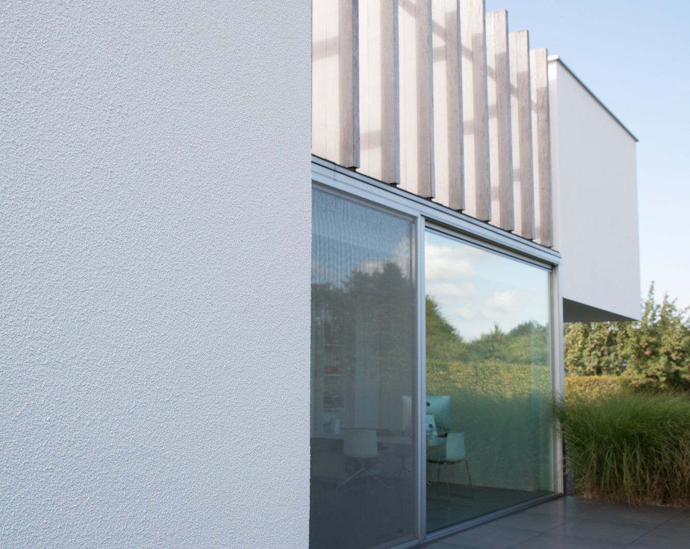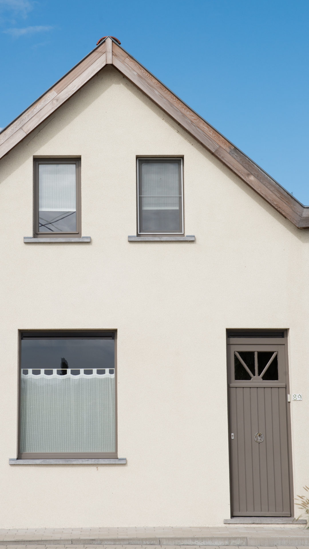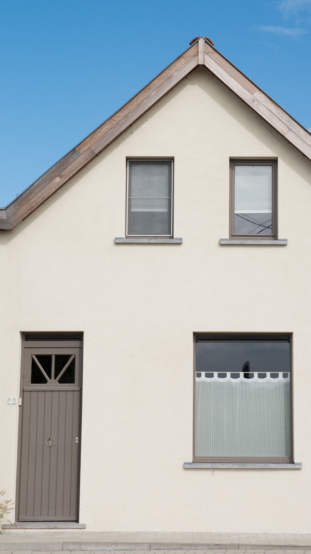 Ons huisje dat in de jaren 60 is gebouwd ziet er na de gevelwerken en afwerking met spuitkurk helemaal nieuw uit.